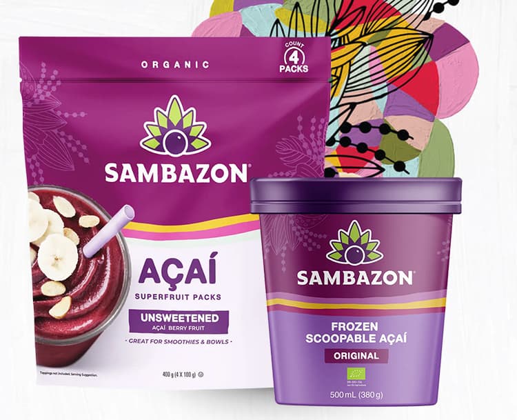 All SAMBAZON products are ethically sourced and hand-harvested by local farmers, making it Certified Organic and Fair Trade Açaí! With our Palm to Palm promise we are able to give back to the community that harvests our Açaí fruit, and establish a direct connection between our farmers and you along the way. Enjoy the Delicious Powers of Açaí.
