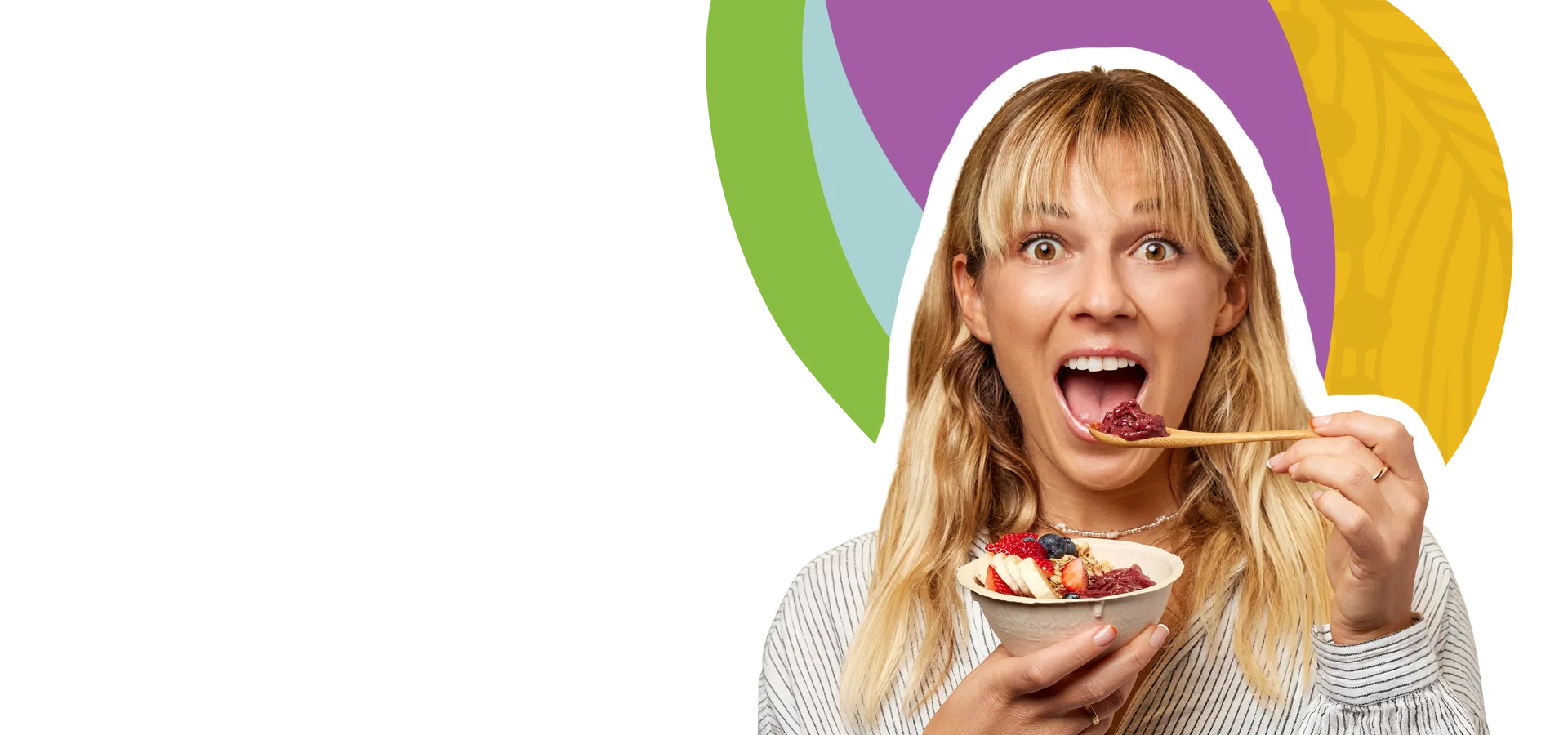 Rápido, práctico y ahora listo para llevar. Nuestros tazones reciclables de fibra vegetal ofrecen una manera fácil de disfrutar de un tazón de açaí o batido sin tiempo de preparación adicional ni licuadora.