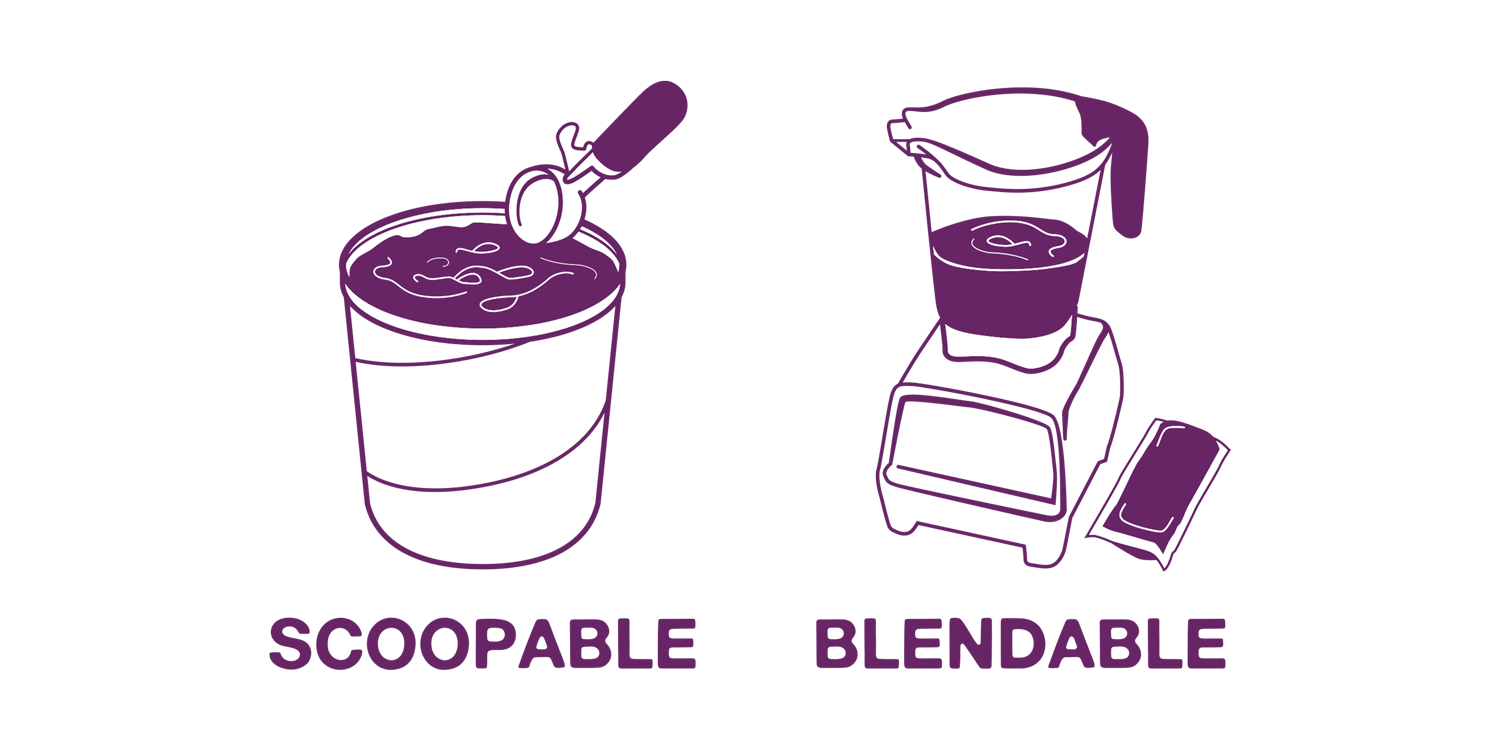 Scoop-from-Frozen Scoopable Açaí in a 500ml size package allows operators to make Açaí Bowls and Smoothies quickly with minimal freezer space.